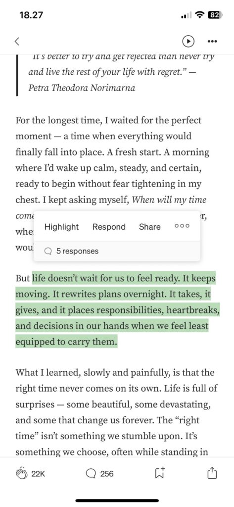 Ini salah satu fitur yang paling disuka Gen Z: highlight. Jadi kalau ada kalimat atau paragraf yang menurut mereka bagus atau relate, mereka tinggal highlight tulisan itu. Setelah itu mereka bisa share atau beri tanggapan, seperti nulis komen tapi untuk kalimat tertentu yang mereka highlight.